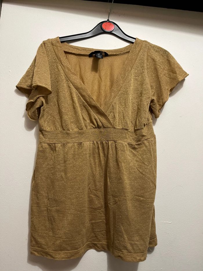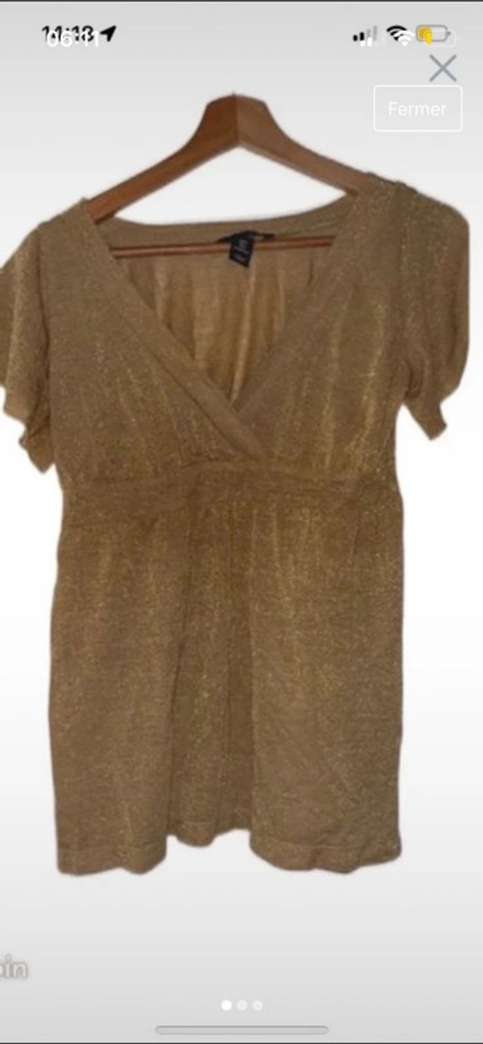 Haut femme H&M Taille S ou 36 Comme neuf Doré pailleté