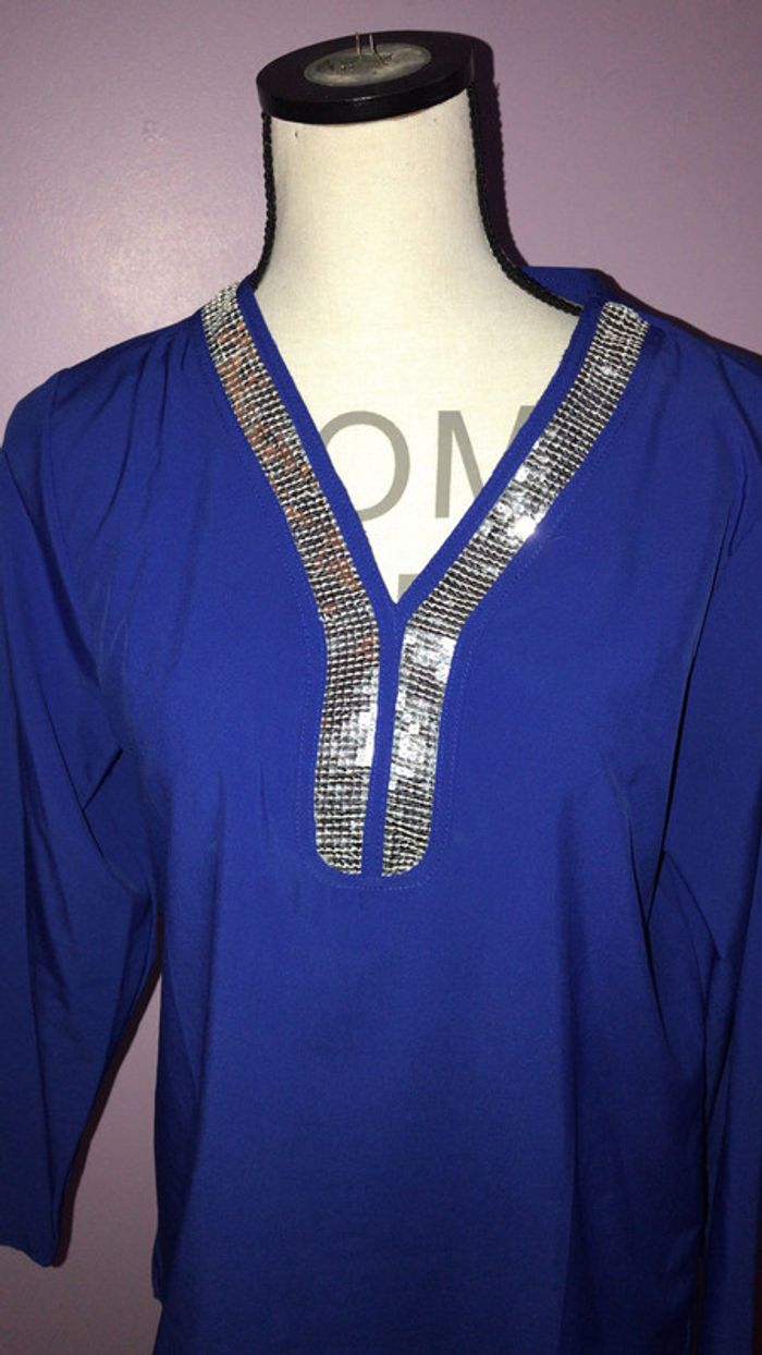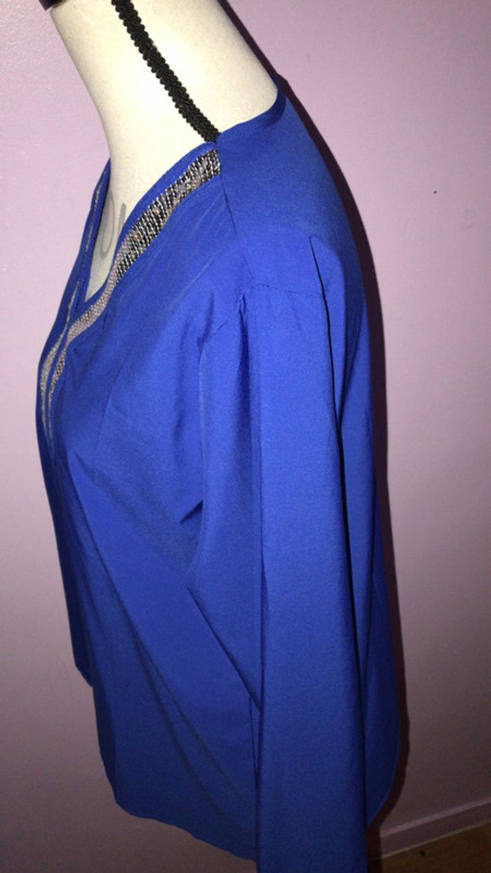 blouse femme neuf jamais mit taille L ou 40 bleu strass argenté