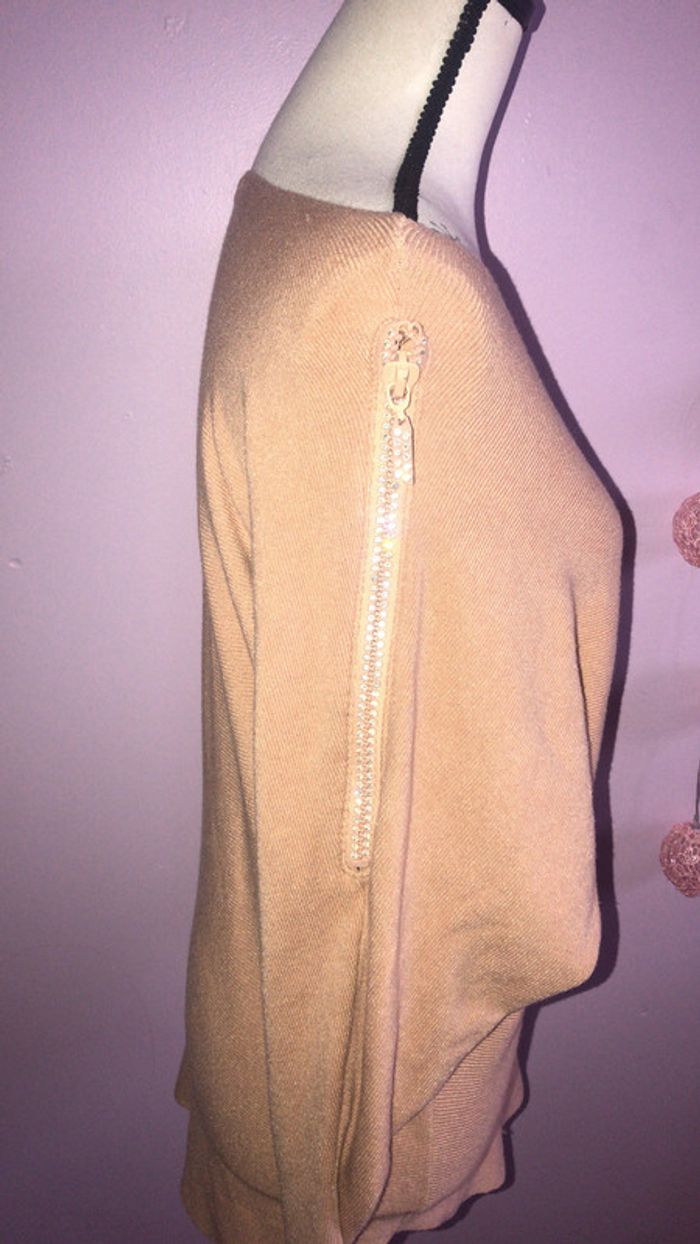 pull robe beige neuf strass sur les épaules fermeture éclair possibilité de les ouvrir taille unique