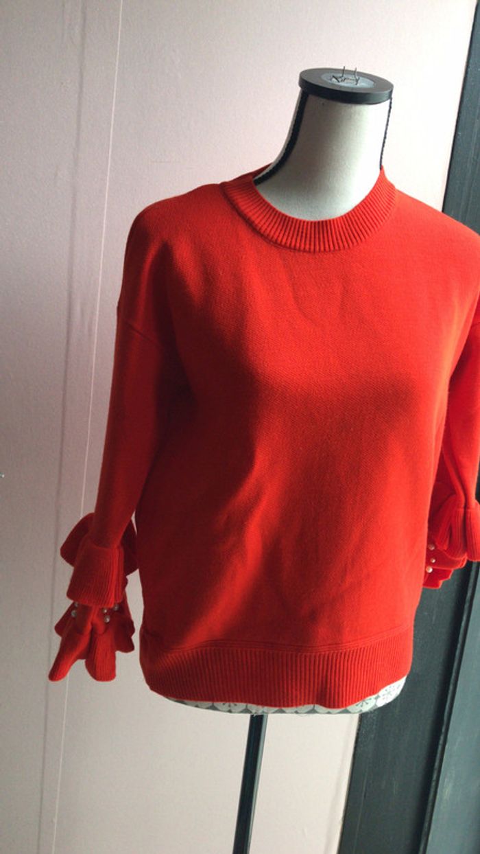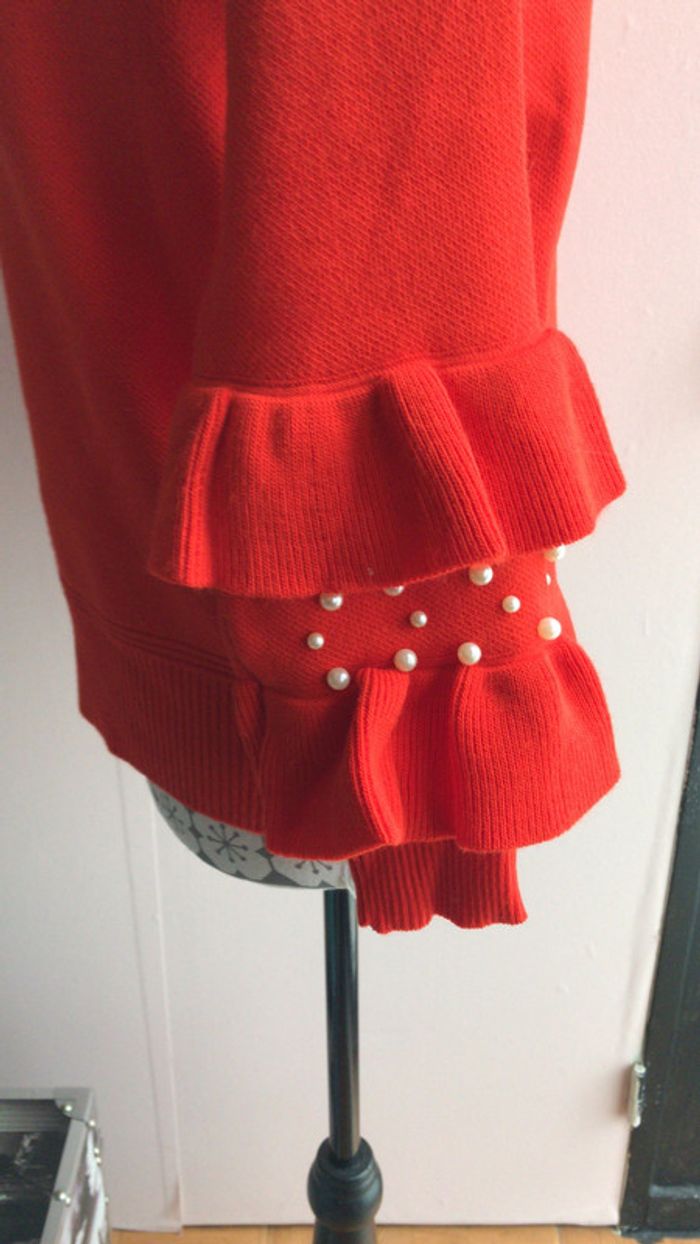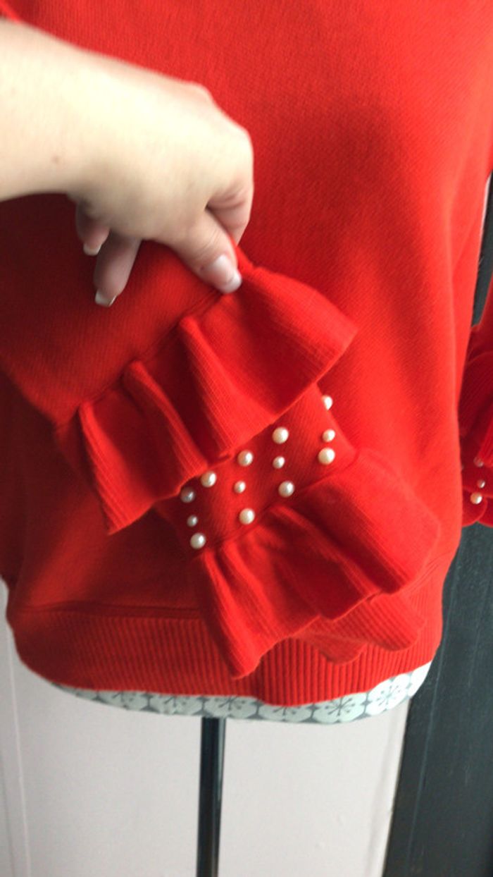 pull mit 1 fois rouge perles blanches manches taille 38