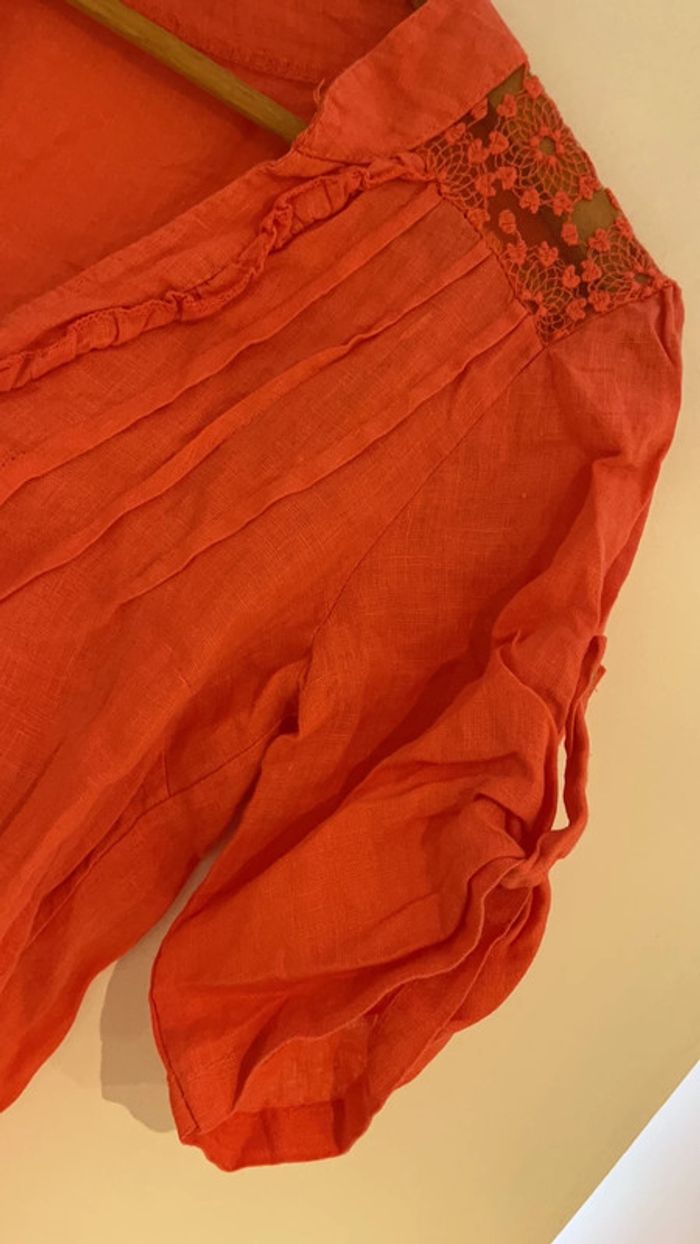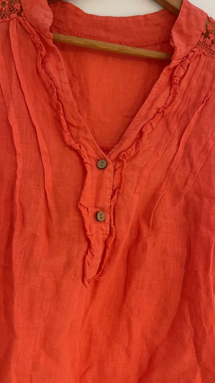 Chemise femme Couleur corail Taille L 100% lin