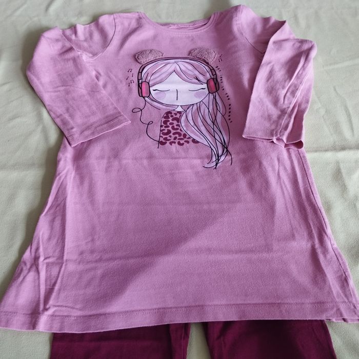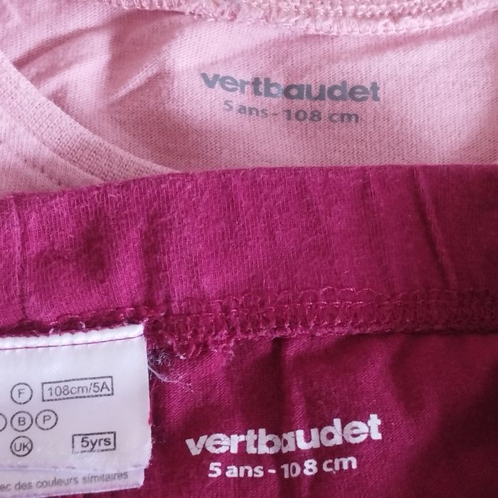Pyjama pour fille de 5ans de chez Vert Baudet. Haut vieux rose , pantalon taille élastique bordeaux.