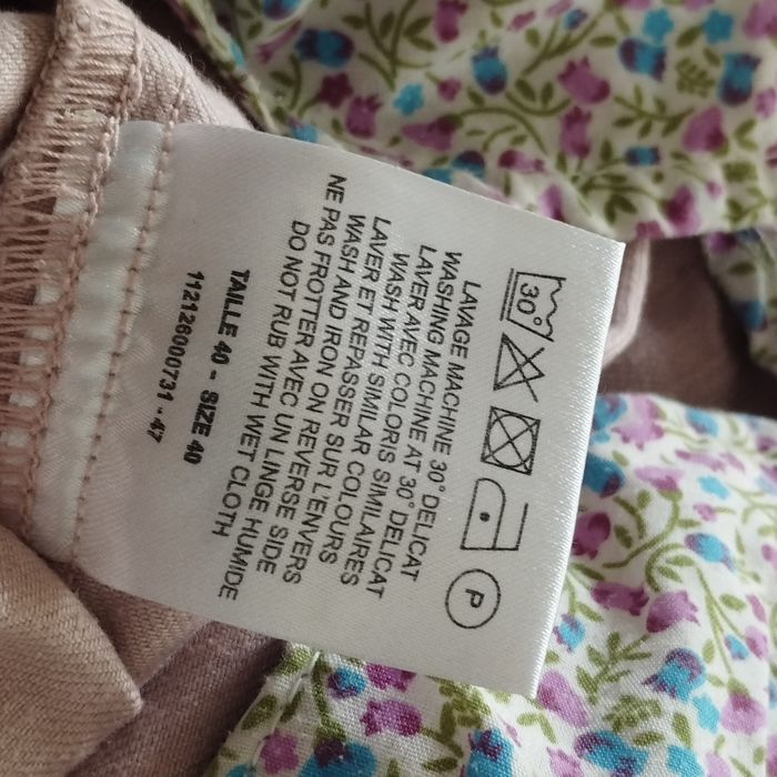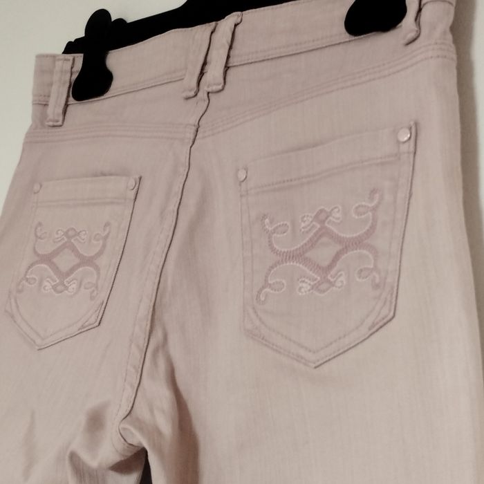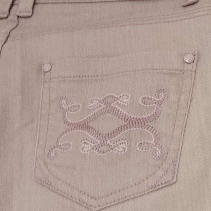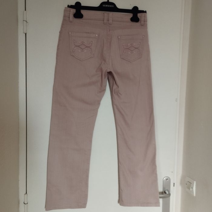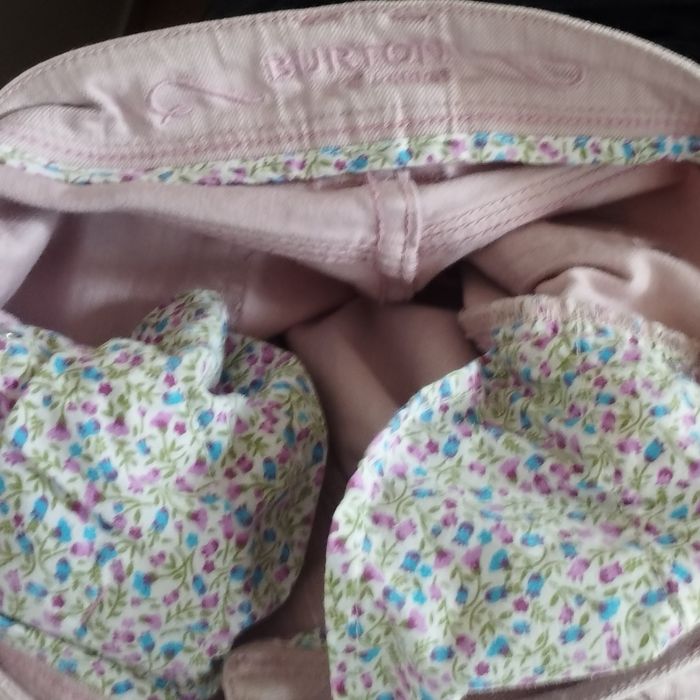 Pantalon pour femme de chez Burton, taille 40, Poches avant et 2 autres plaquées brodées à l'arrière. en pur coton coloris vieux rose très pale . Longueur 93cm.