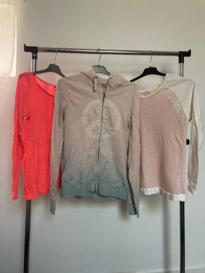 Lot très bon état comprenant un pull blanc et rose taille S marque Tally Weijl + haut manches longues H&M taille S + veste rose dégradée bleu Kiabi taille M