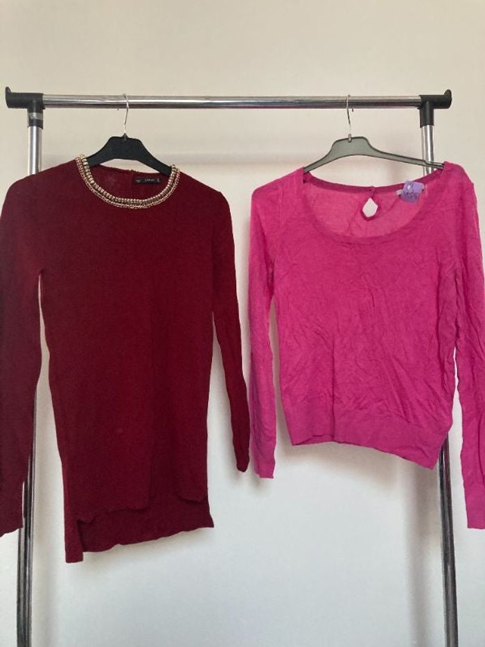 lot de 2 pulls taille S comprenant un pull H&M rose très bon état + un pull Zara bordeaux détail bijoux très bon état