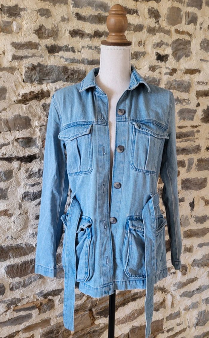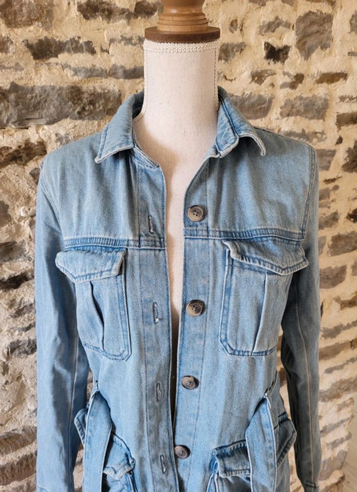 Très jolie veste en jean bleu clair, longue avec ceinture à nouer style parka en jean Kiabi Taille S ou 34 36 Bien vérifier les photos des mesures à plat Carure 40cm Aisselles 48cm Longueur 70cm Effet délavé d'origine 100% coton Grandes poches, 1 bouton de rechange En excellent état #matka27_taille34 #matka27_taille36 #taille3436 #vesteenjean #bleu #délavé #parka #jean #kiabi #ceinture
