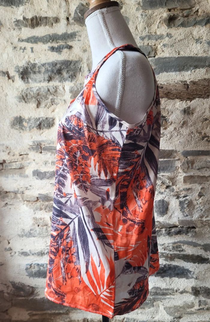 Débardeur à motifs feuilles écru et orange U Collection Taille 38 - photo numéro 2