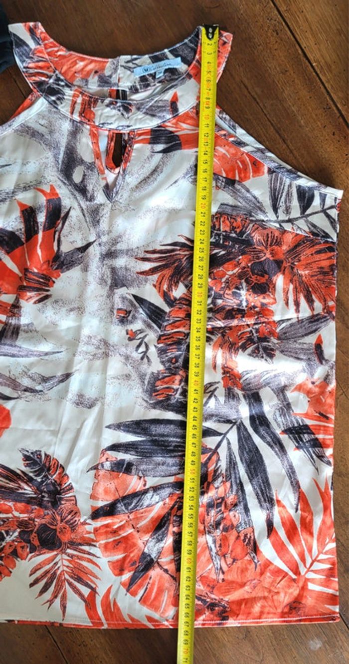 Débardeur à motifs feuilles écru et orange U Collection Taille 38 - photo numéro 10