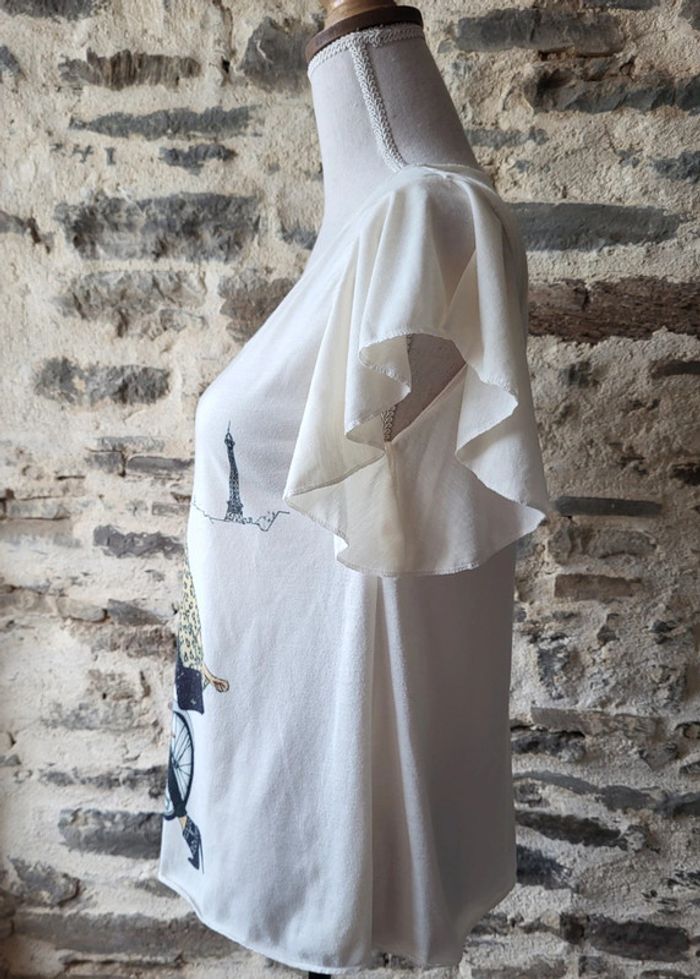 T-shirt manches courtes écru motif parisienne à vélo Taille 34 - photo numéro 3
