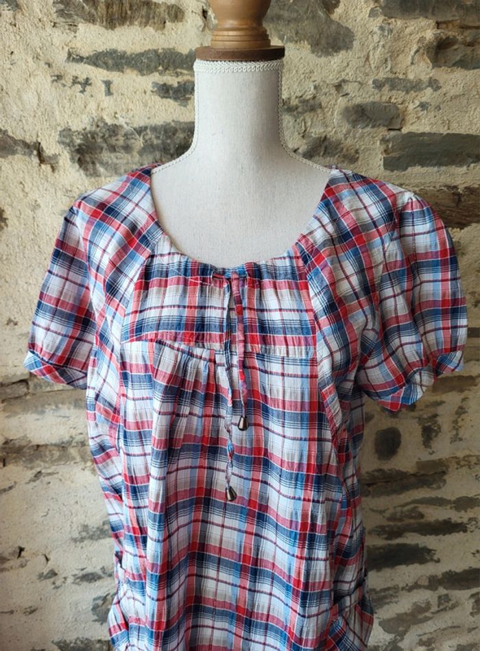 Blouse manches courtes à carreaux rouge bleu blanc FD Joseph Taille 42 44 - photo numéro 15