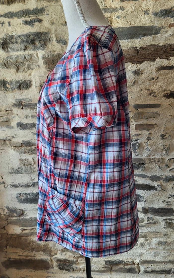 Blouse manches courtes à carreaux rouge bleu blanc FD Joseph Taille 42 44 - photo numéro 4