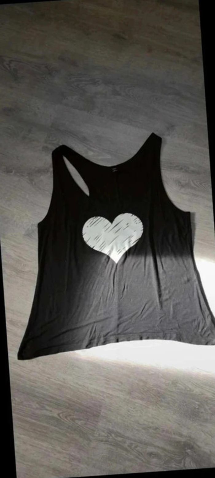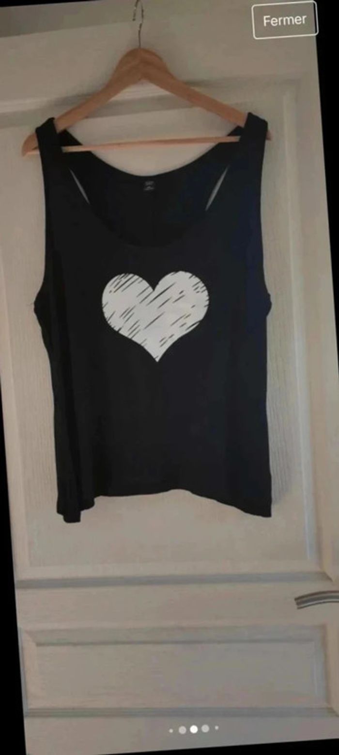 Top sans manches Noir avec cœur blanc Taille xxl vaut un 48 EUR Largeur aisselles 48 cm Longueur 63 cm 🌸65% coton 🌸30% polyester 🌸5% spandex #Anadfemmetaille48 #AnadfemmetailleXXL #top #topsansmanches #topfemme #vêtements #vêtementfemme