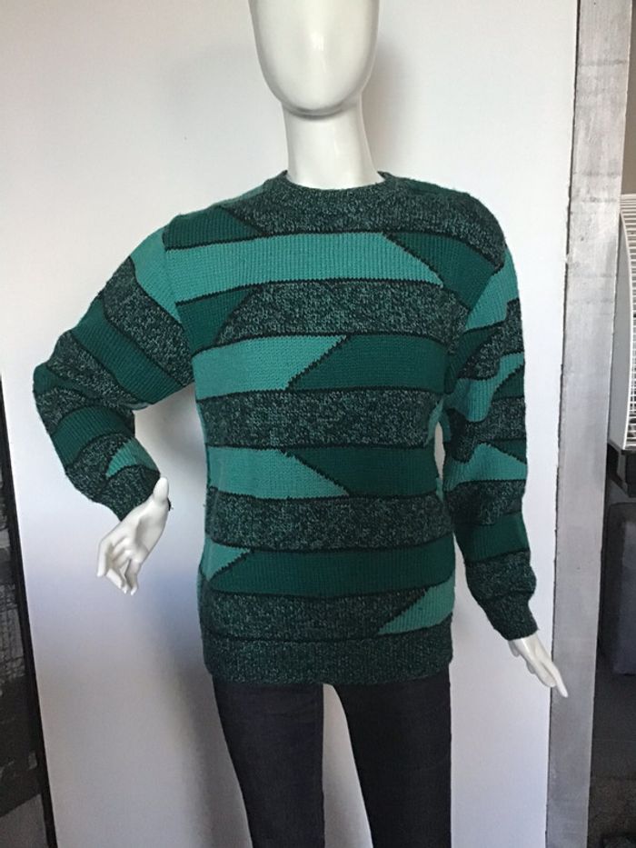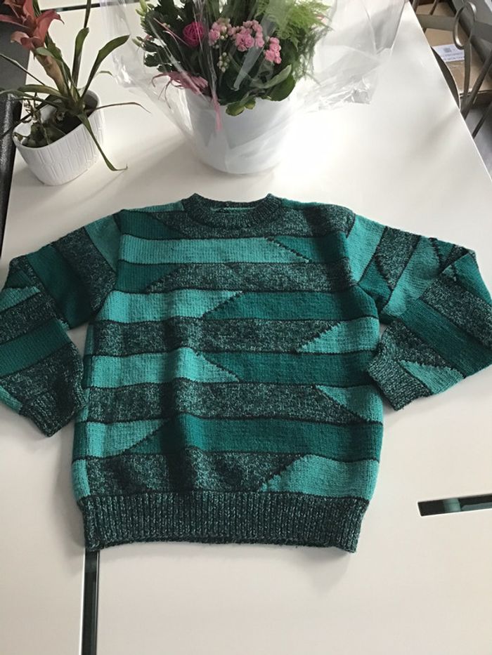 Pull jacquard année 82 Fait main 20% laine peignée - photo numéro 1