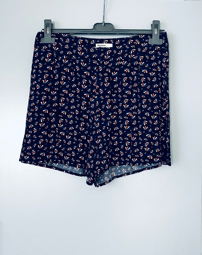 Short neuf fluide et léger « Bizzbee » T38, couleur de fond bleu marine, fermeture braguette et petit crochet ( voir photo) Réduction sur les lots ✅