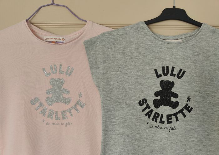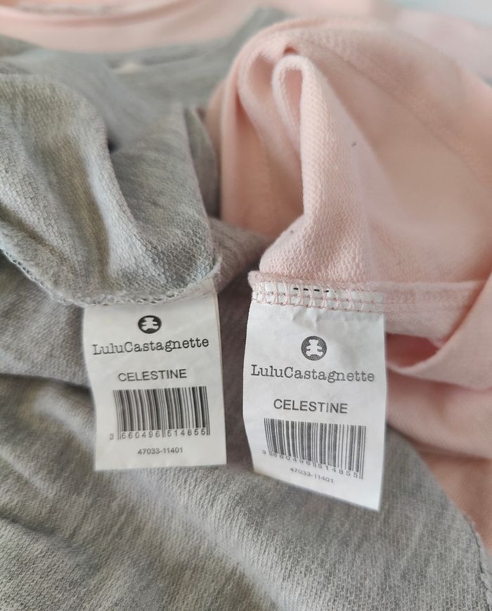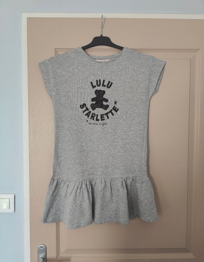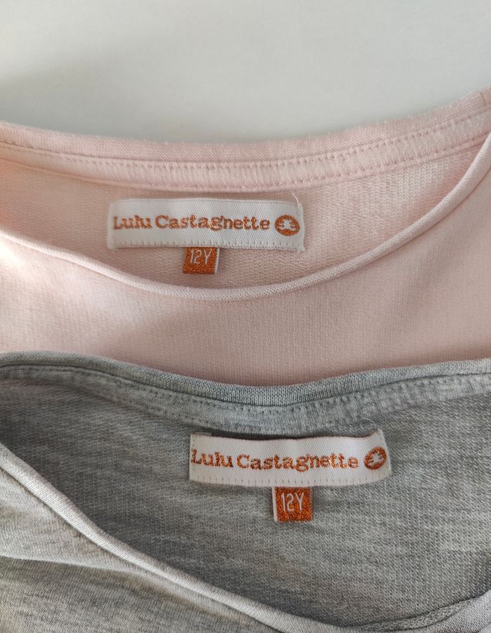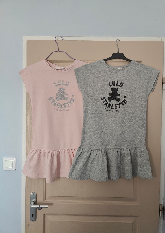 2 robes Lulu Castagnette Base volantée Taille 12 ans Logo brillant Une grise neuve jamais portée Une rose portée 2 fois. A noter Petites tâches, voir dernières photos