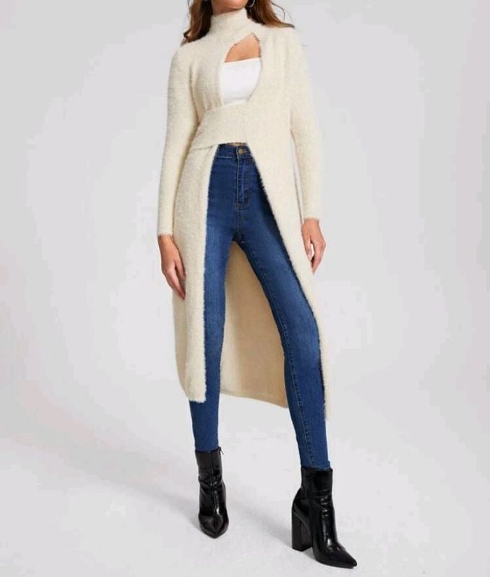 Cardigan maille long écru col montant Maille toute douce Boutique indépendante