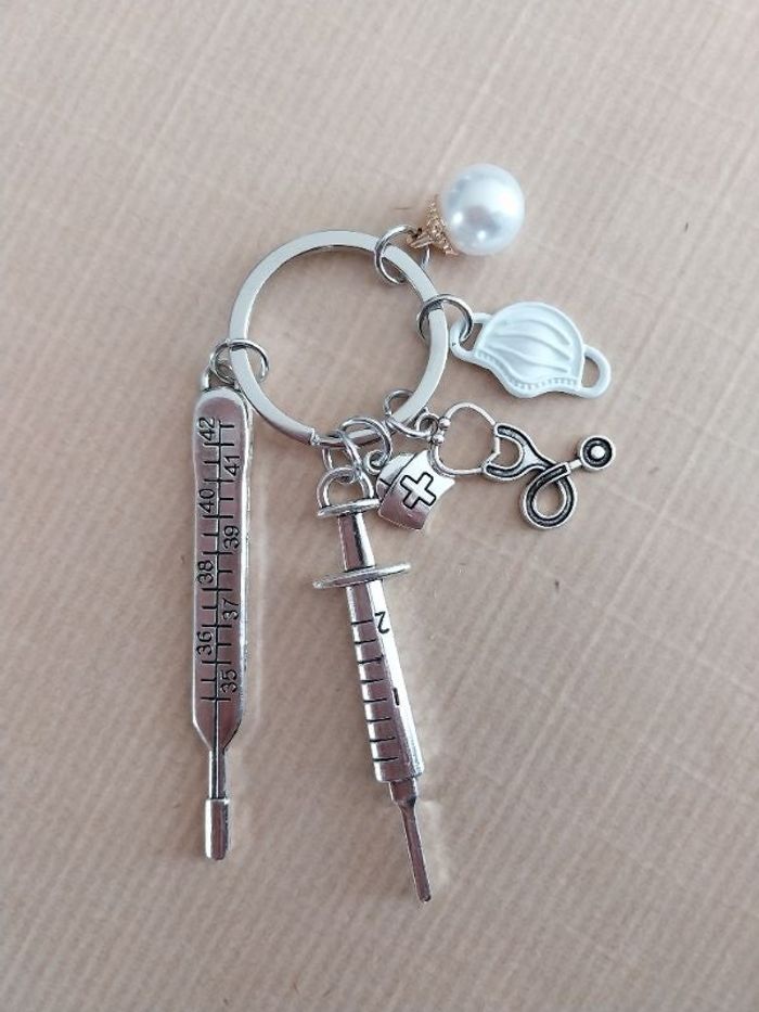 Porte clefs profession médicale infirmière blanc