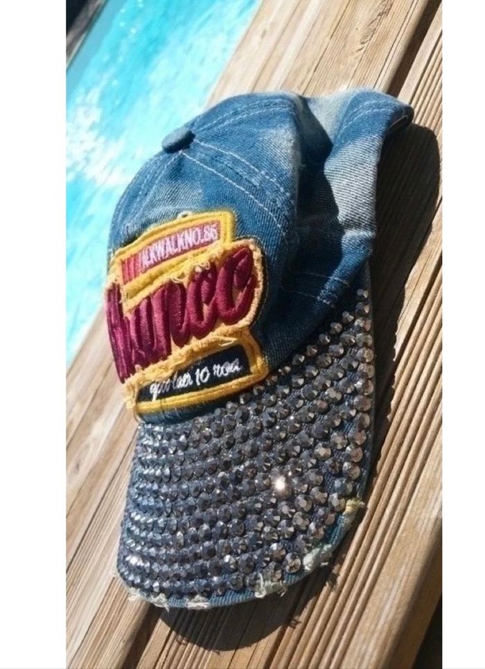 Casquette en jeans ornée de strass sur la visière marque Capricorn Complétement swag Neuve jamais portée Taille universelle