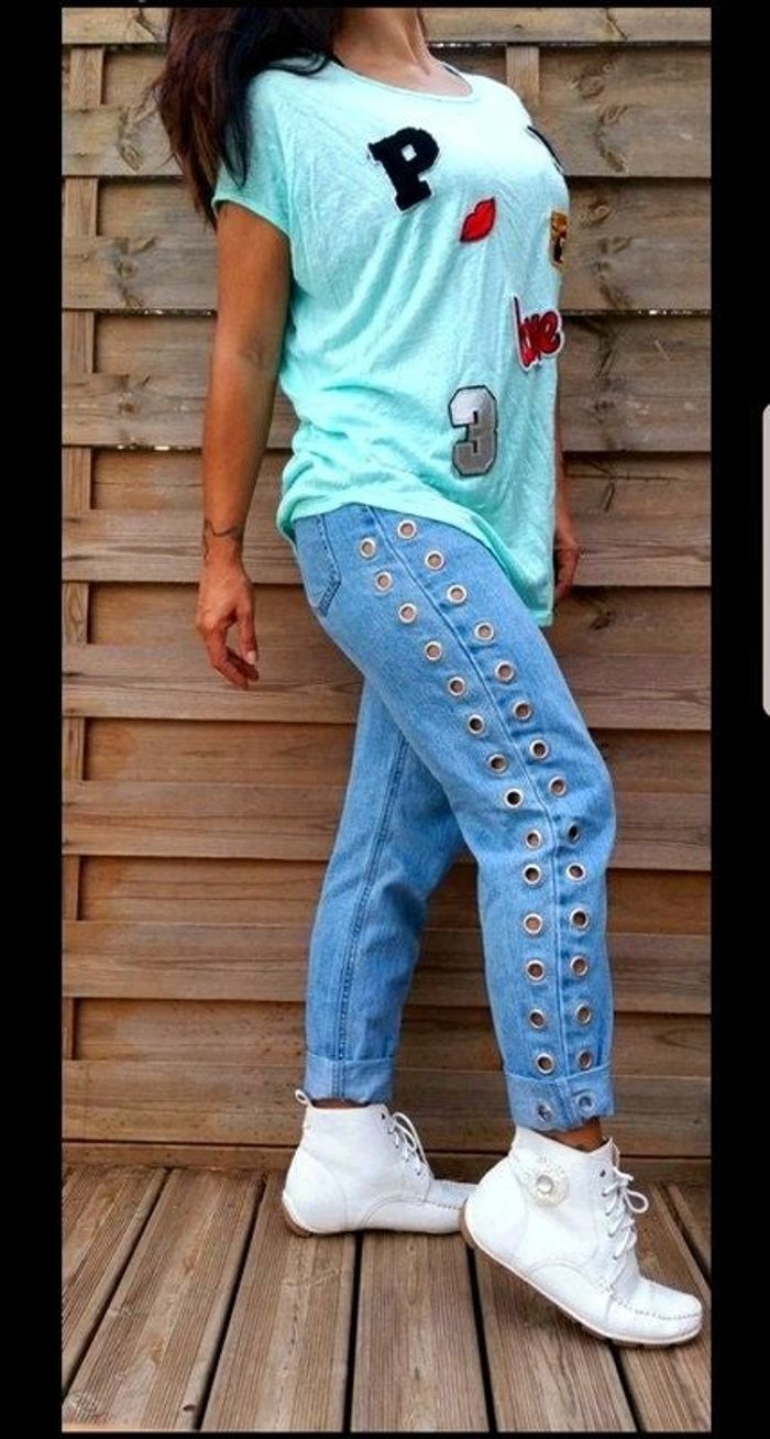 Tee-shirt loose oversize turquoise écussons Flamant Rose Taille universelle