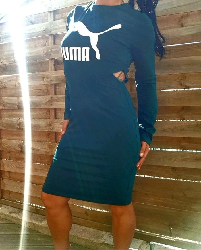 Robe Puma à découpes vert sapin À porter en journée Ras du cou Logo Puma emblématique Fentes sur les côtés Fermeture éclair au dos Coupe moulante près du corps Neuve jamais portée 🌷 PRIX FERME ET FIXE ET DÉFINITIF 🌷
