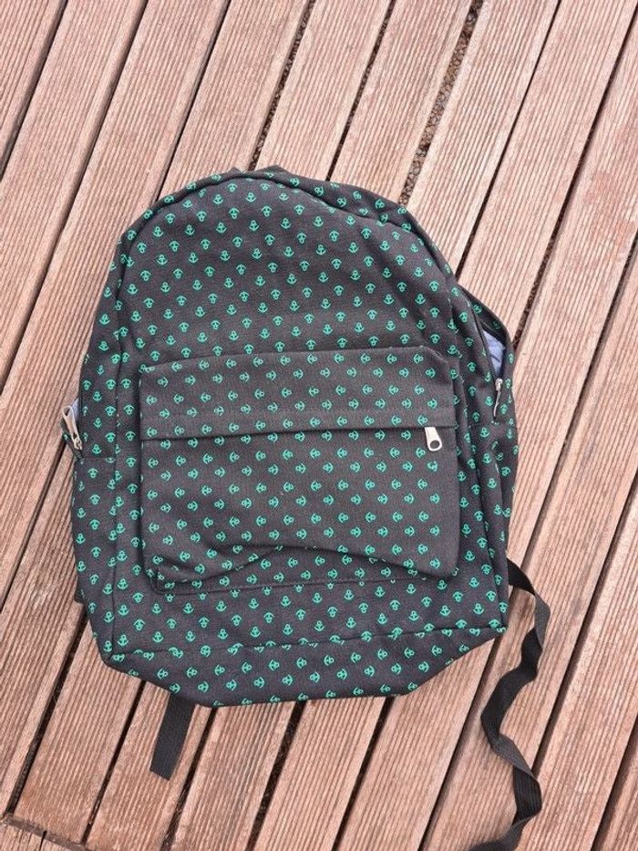 Grand Sac à dos imprimé ancre marine neuf sac à dos imprimé ancre marine neuf NOIR ET VERT Dimensions 39X33X12 peut largement contenir les cours et cahiers Pochette extérieure ouverture Glissière et grande poche principale intérieure avec un compartiment et une pochette fermeture glissière.