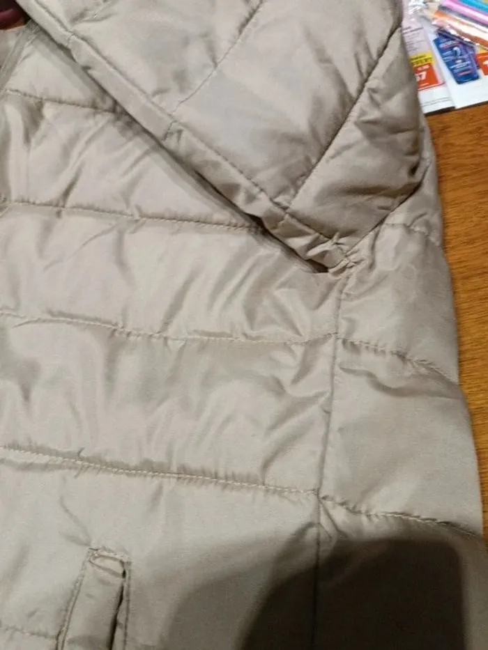 Doudoune matelassée beige TEX, taille S/36, épaules 40 cm, aisselles 50 cm, longueur 60 cm, manches 62 cm, extérieur, doublure et garnissage 100% polyester - NEUVE