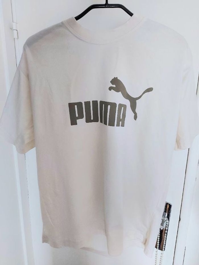 Tee shirt mixte manches courtes de marque Puma taille M et de couleur crème. Matière 100% coton. Excellent état.