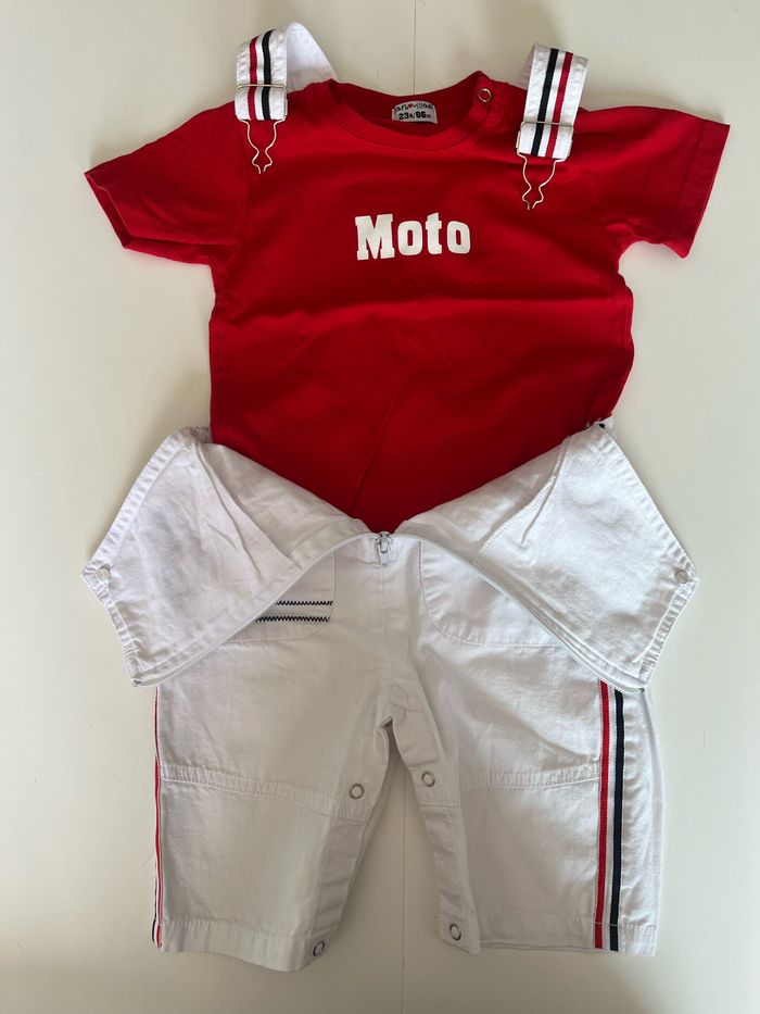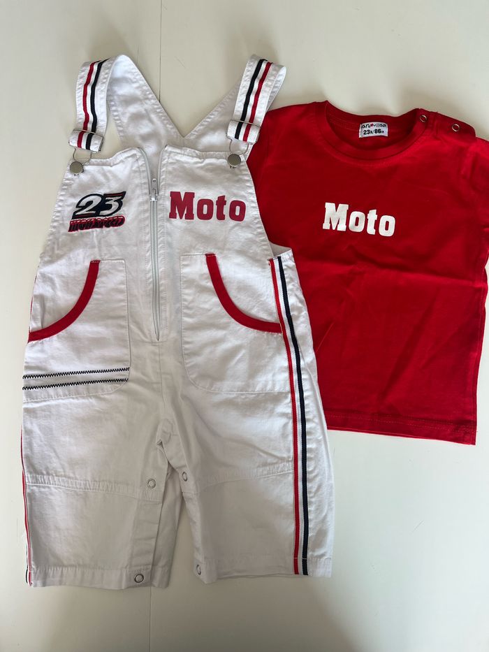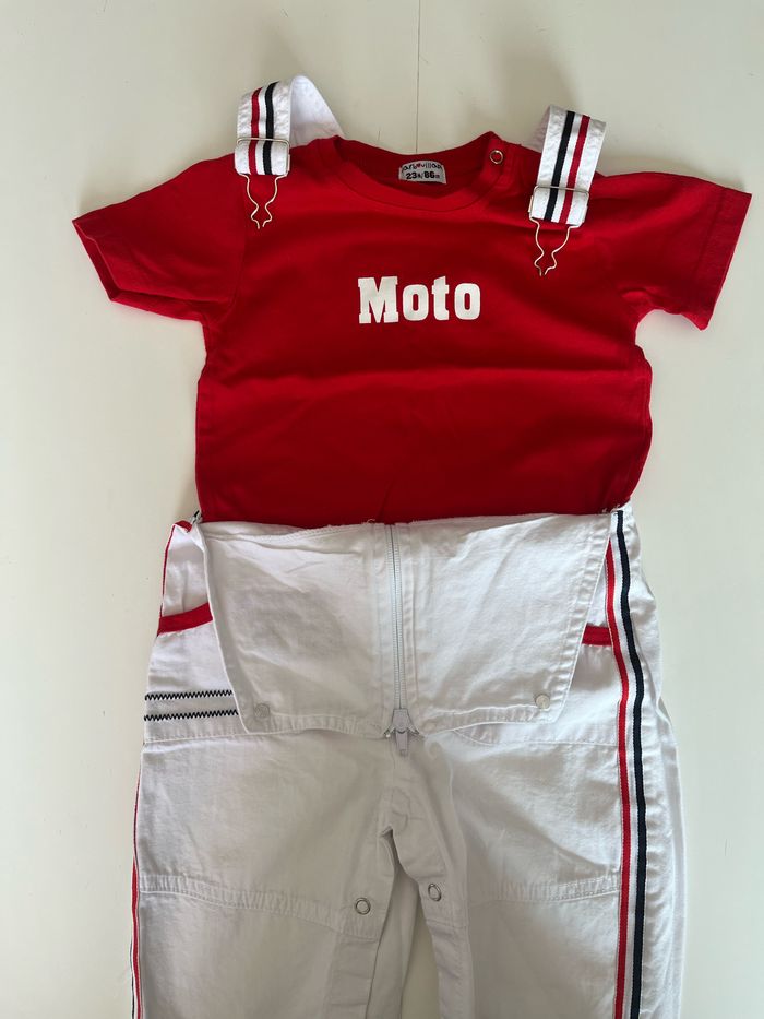 Ensemble t-shirt rouge et salopette Moto 23m - photo numéro 1