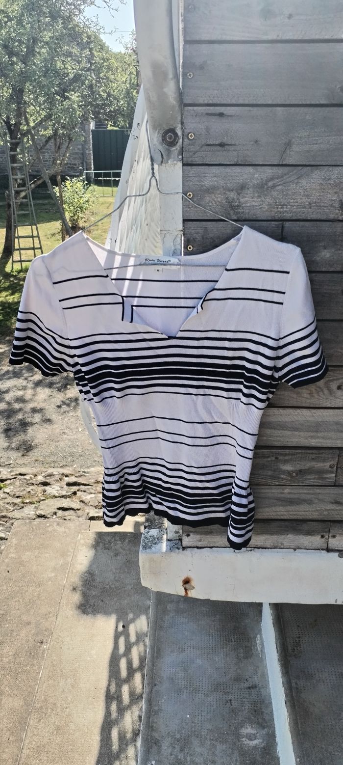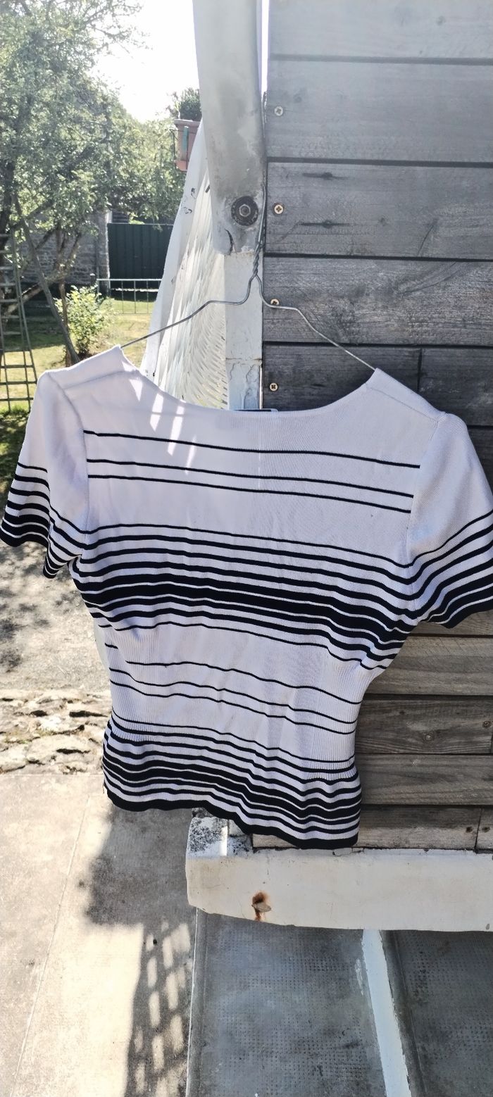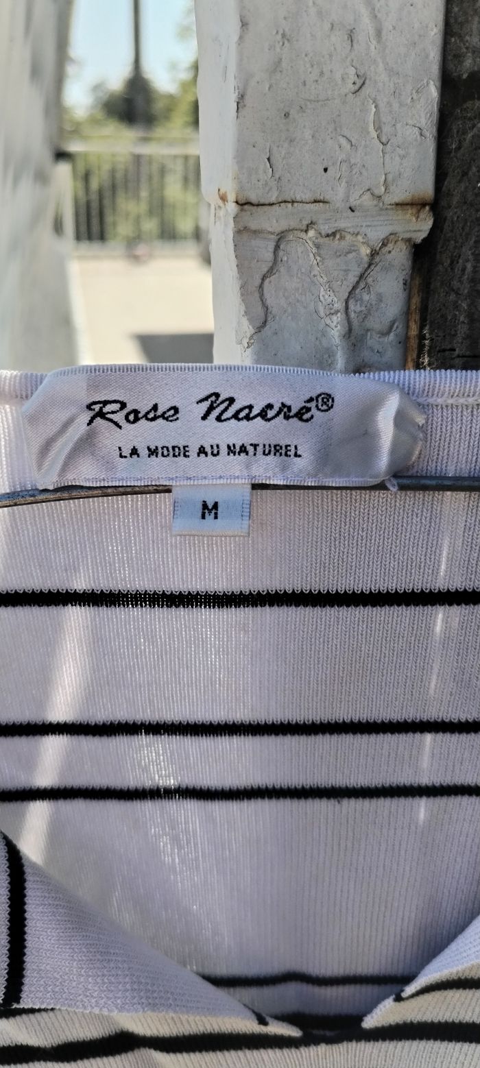 T Shirt noir et blanc à manches courtes pour femme. Marque Rose Nacré. Taille M. Comme neuf. Que mondial relais ou Relais Colis