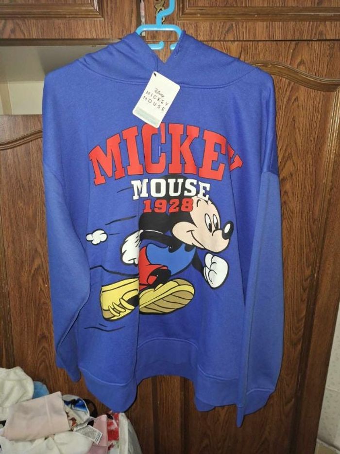 pull Mickey de taille 2 XL il peut faire mixte il y a une poche sur chaque côté du pull longueur : 69 cm aiselle à aiselle : 76 cm à plat épaule à épaule : 68 cm à plat mon prix est fixe