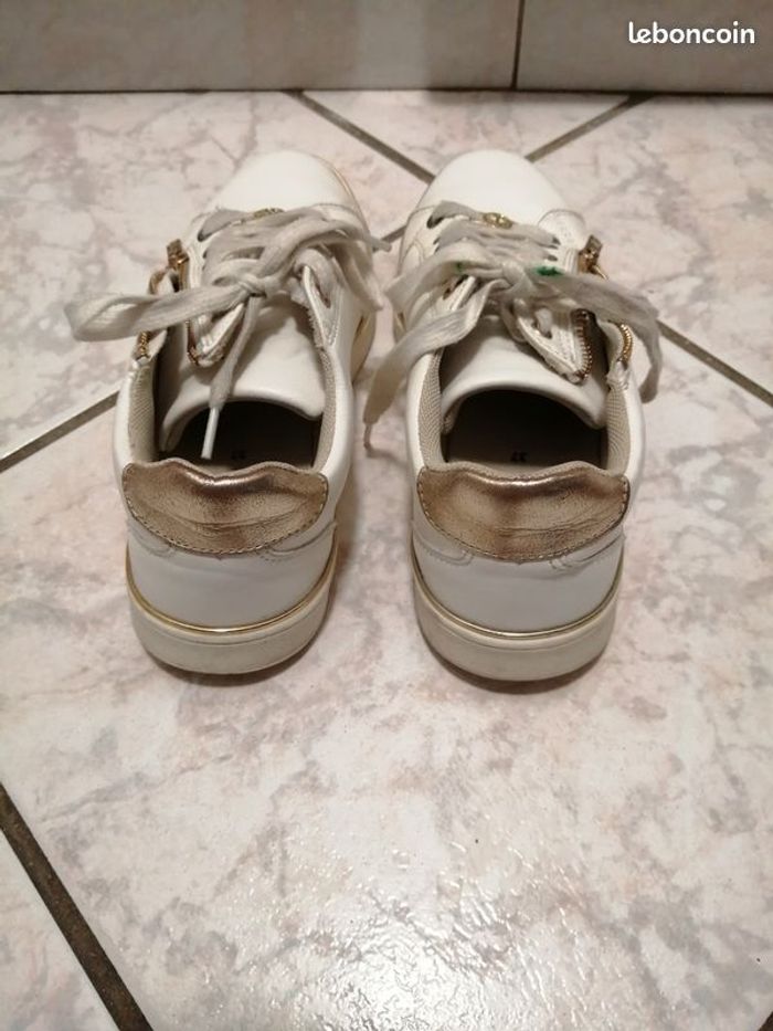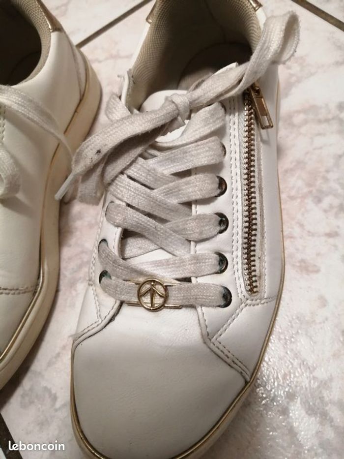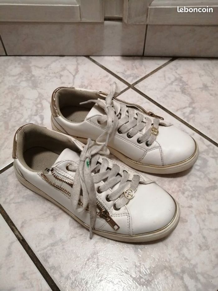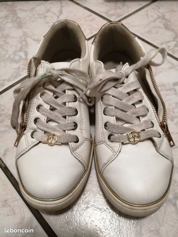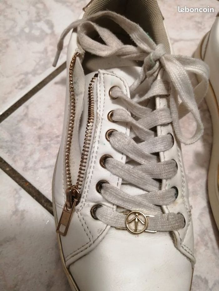 Basket fille à lacets Fermeture éclair sur le côté l' une d' elle ne ferment plus mais elles peuvent être portées quand même.