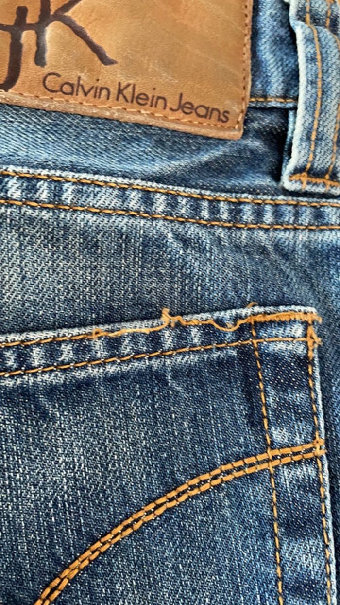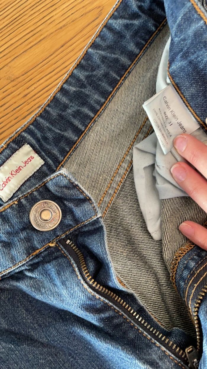 Très beau jean brut Calvin Klein T31 (US) 100% coton Légère usure sur la poche arrière gauche + quelques coutures qui ont sauté sur les poches arrières également (cf photo)