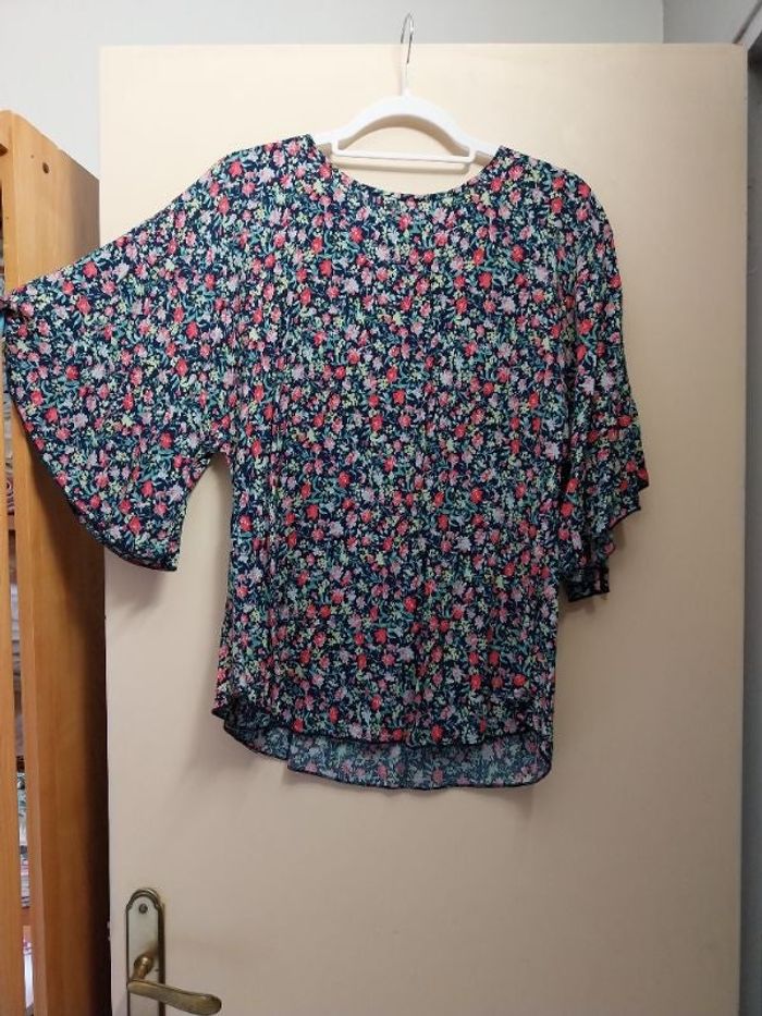 Blouse manches évasées, très fluide et agréable,avec un bouton derrière, à mettre pour le début du printemps