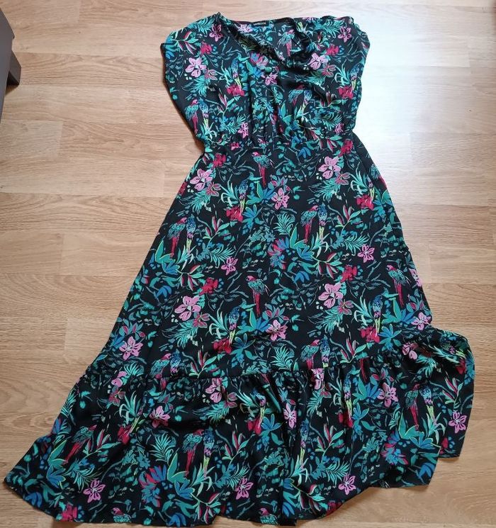Robe longue noir imprimée feuillage, oiseaux, fleurs Cache cache 40 Neuve, jamais portée