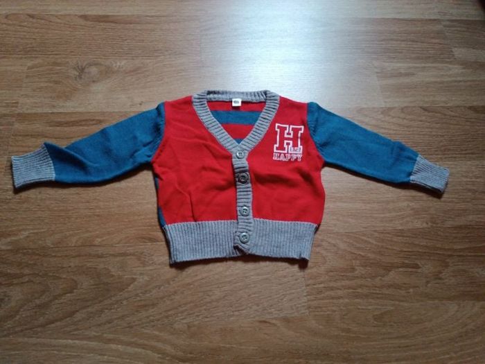 Gilet rouge bleu et gris 6 mois