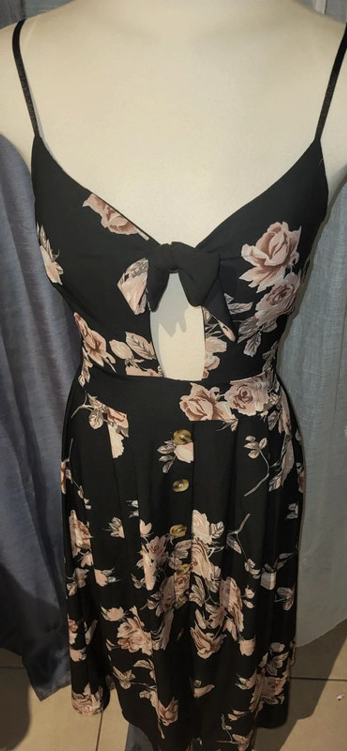 🌾 Robe noire Ă  fleurs nouĂ©e – taille marquĂ©e & boutons – fĂ©minine et Ă©lĂ©gante 🌾 - photo numĂ©ro 3