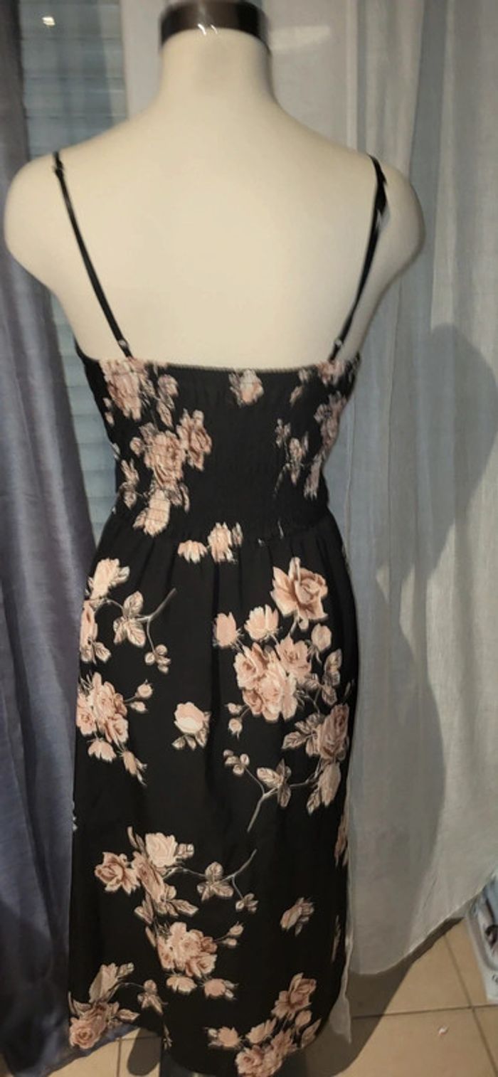 Magnifique robe noire Ă  imprimĂ© floral, parfaite pour le printemps/Ă©tĂ© ! 💖 DĂ©tails ultra fĂ©minins : nƓud sur le buste, ouverture discrĂšte, taille cintrĂ©e et rangĂ©e de boutons sur le bas. 🎀 Bretelles fines et tissu lĂ©ger, fluide et agrĂ©able Ă  porter. Doublure poitrines pour ĂȘtre portĂ© sans soutien gorge. 💐 Parfaite pour un look bohĂšme chic, que ce soit en journĂ©e ou en soirĂ©e ! 📏 Taille : 36/38 đŸ§” État : TrĂšs bon Ă©tat