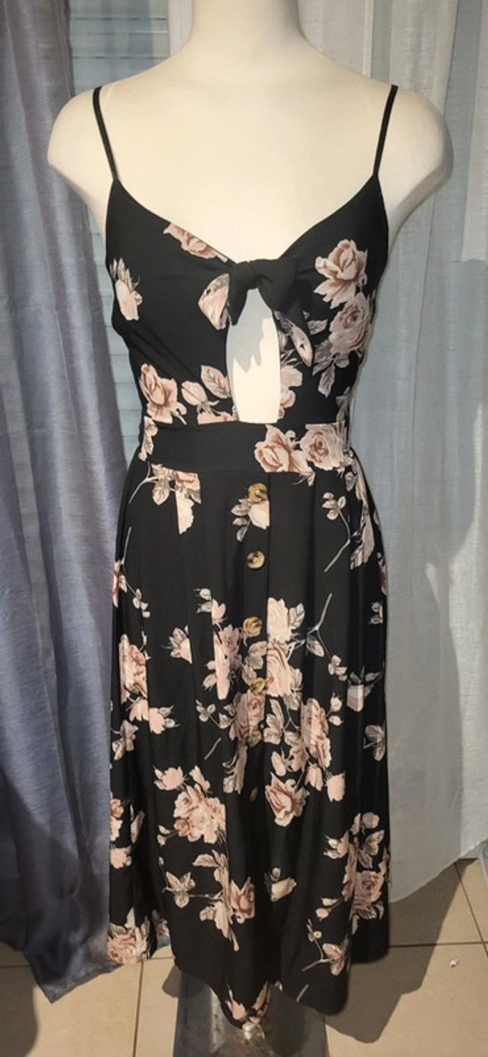 🌾 Robe noire Ă  fleurs nouĂ©e – taille marquĂ©e & boutons – fĂ©minine et Ă©lĂ©gante 🌾 - photo numĂ©ro 1