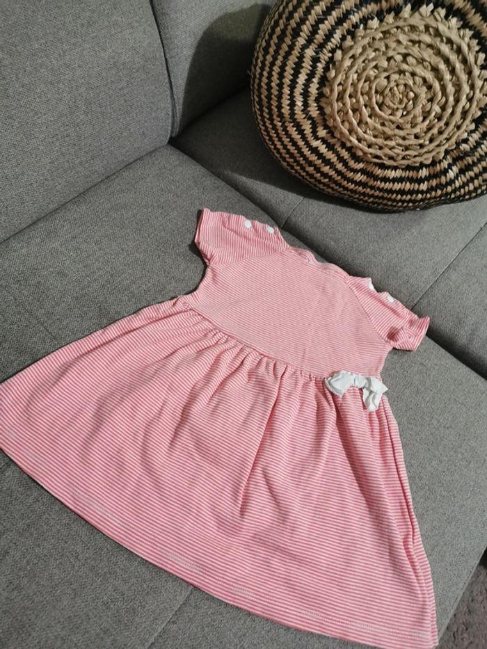 Robe marinière avec insert noeud Petit bateau Blanc et saumon Taille 18 mois Comme neuve portée une Fois