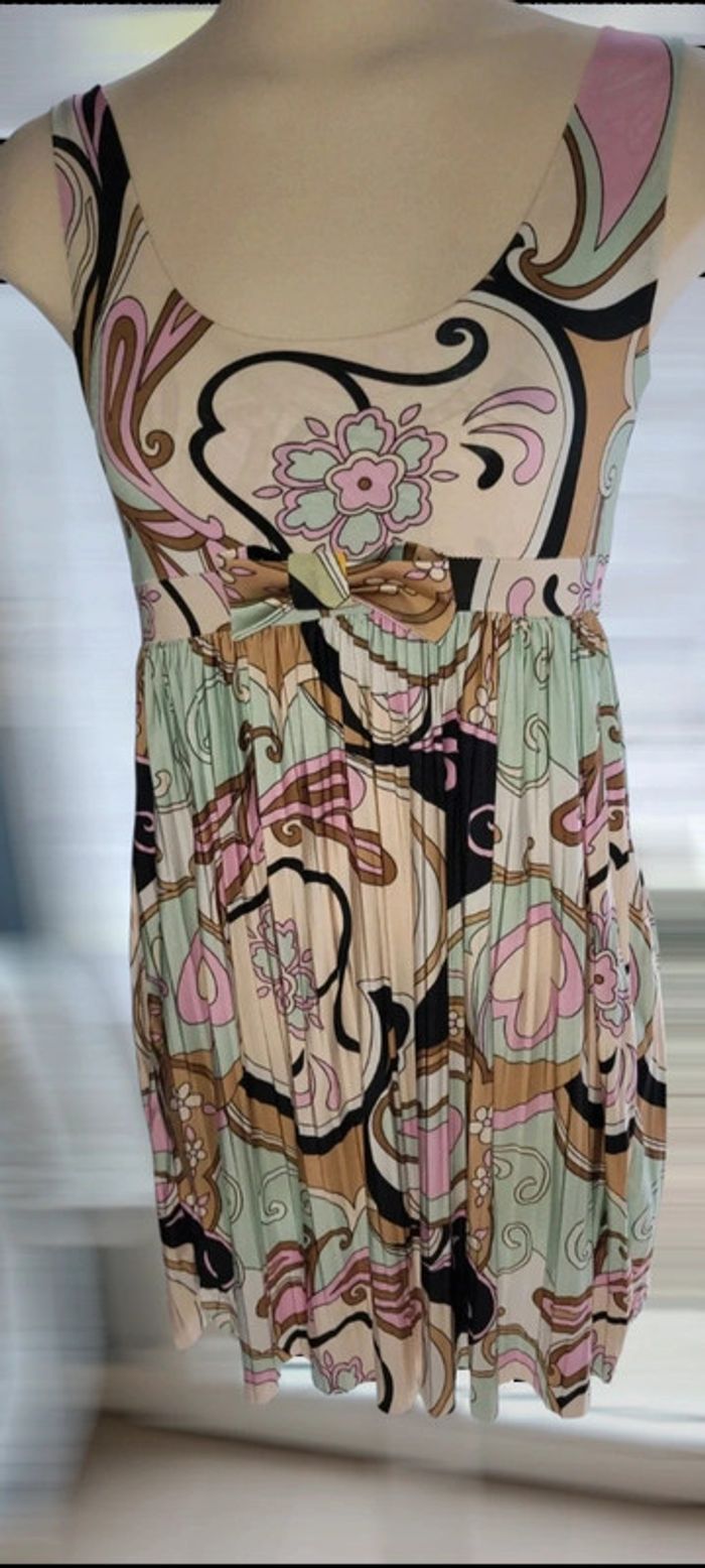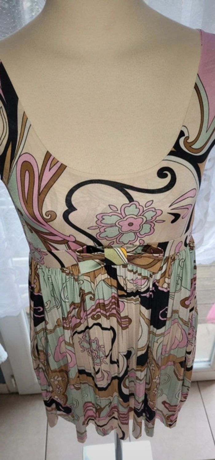 **Description :** Ajoutez une touche de fraîcheur et d'élégance à votre garde-robe avec cette magnifique robe - **Motifs :** Floral et abstrait dans des tons de rose, vert, beige et noir. - **Coupe :** Ajustée au buste, avec une jupe plissée légère. - **Taille :** 36 - **État :** Excellent, portée seulement quelques fois. Parfaite pour les belles journées d'été, une sortie décontractée ou une occasion spéciale. Vous allez l'adorer ! Pleins d'autres vêtements à petits #a2life_taille36