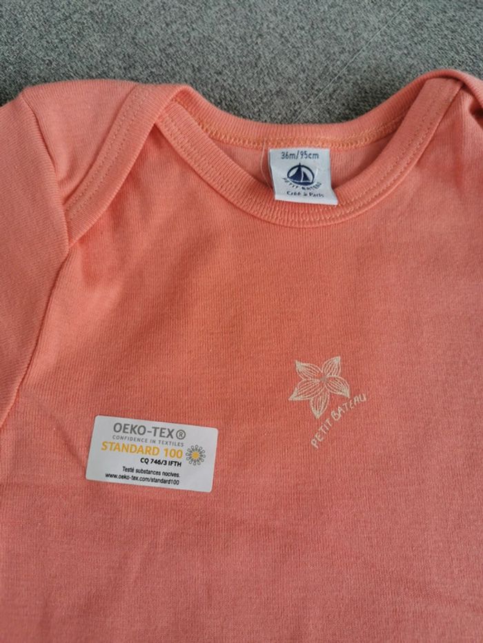Body t-shirt 36 mois Petit Bateau Corail fleur de vanille Neuf avc étiquette eoko tex