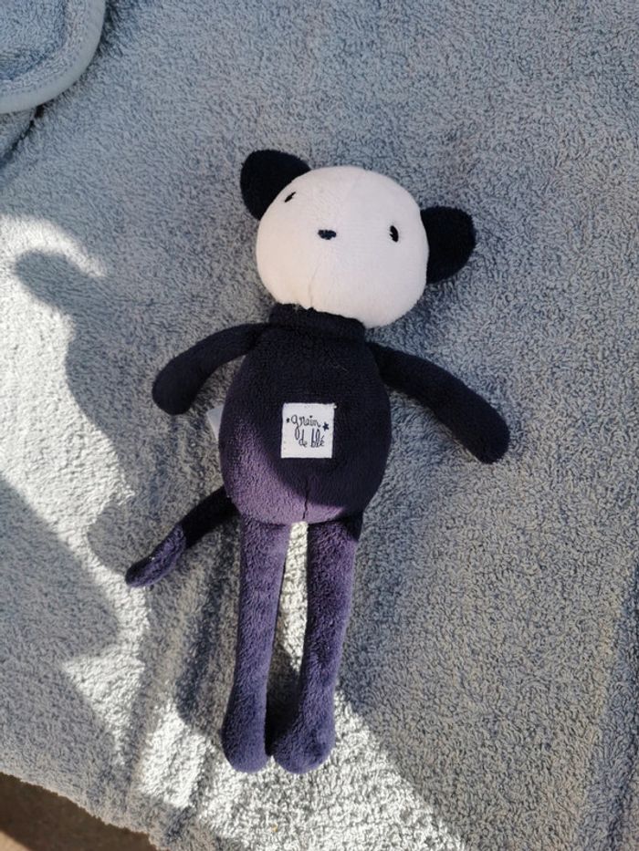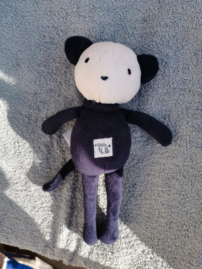 Grain de blé chat doudou bleu marine et blanc  Dimension : environ 25 cm