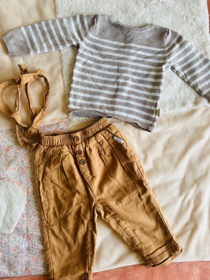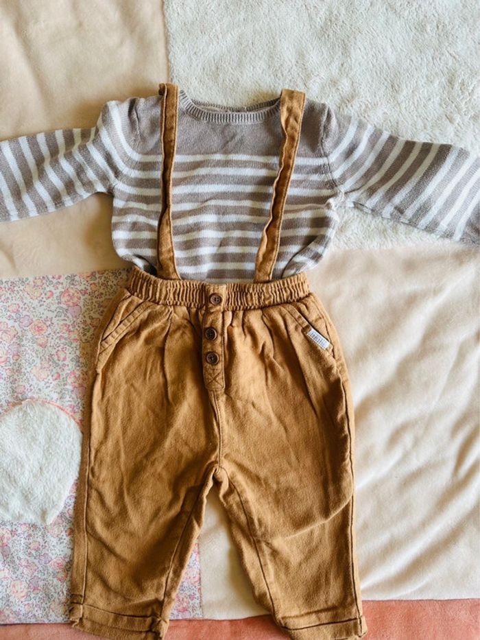 Pull à rayures et pantalon à bretelles 9 mois En très bon état #mmebarbier54garçon12mois