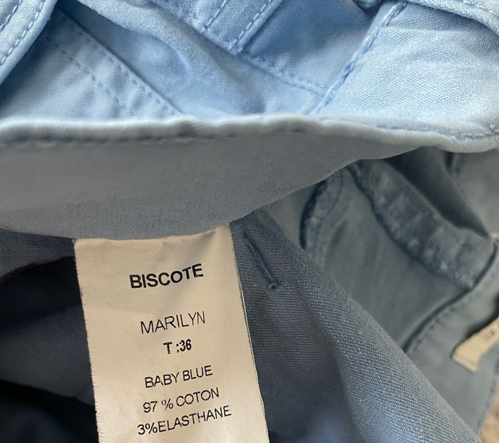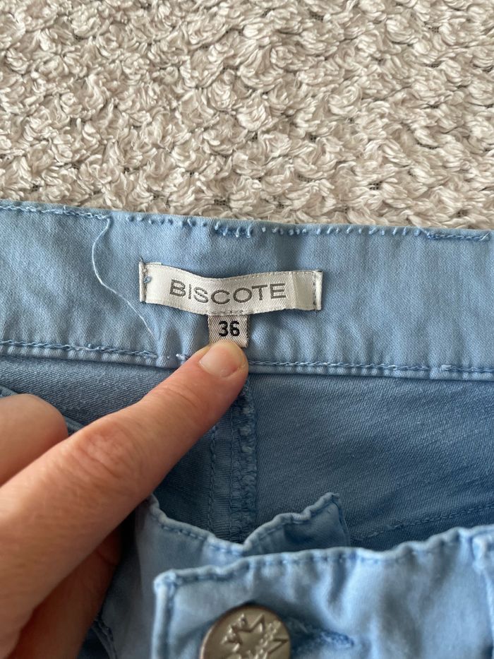 Jean bleu ciel - coupe slim - zippé sur le bas des jambes - Biscote - taille S/36 - état neuf 👍🏻