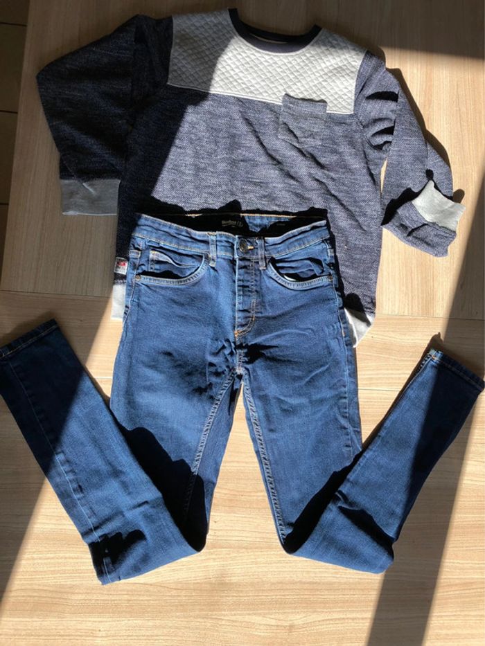Jean slim + pull Taille 34 pantalon Taille14 ans pull Très bon état