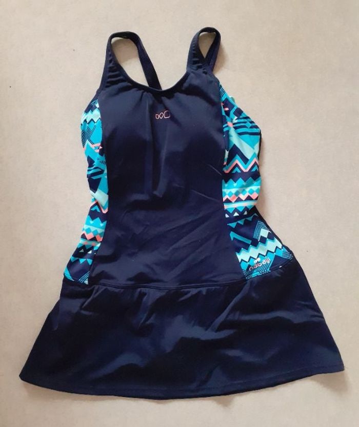 Maillot de bain / jupe 1 pièce de marque Nabaji taille 38/40 Bleu marine avec imprimé géométrique sur les côtés