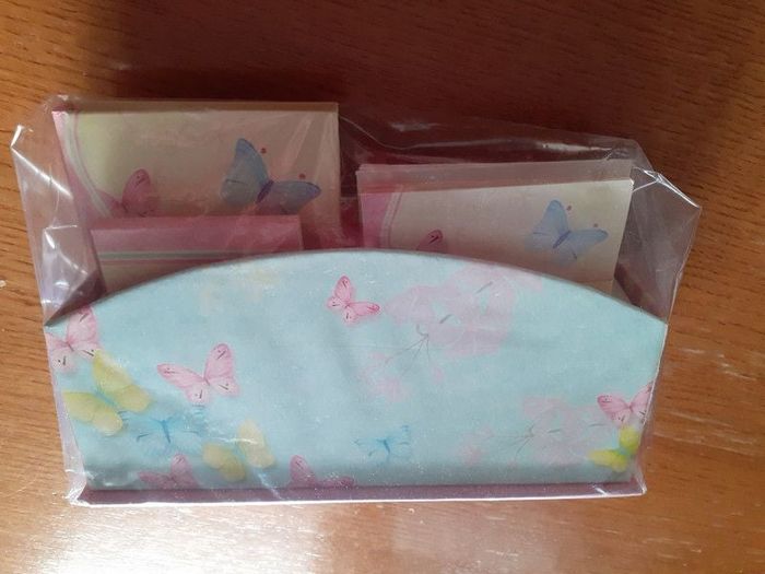 Set d'écriture Papillons, comprenant carnet, enveloppes, cartes et carnet. Neuf.