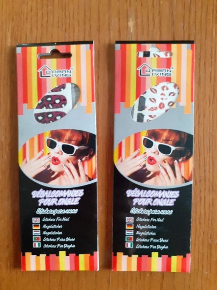 Stickers pour ongles Lot de 2 planches de 12 stickers "lèvres" et 12 stickers "panthère" par décalcomanie De marque Urban Living Avec 2 limes. Neuf
