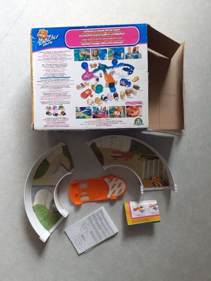 Zhu Zhu Pet SKATEBOARD avec emballage d'origine, complet : 1 skate + 2 sections de courbe en U + 3 connecteurs en excellent état à partir de 4 ans
