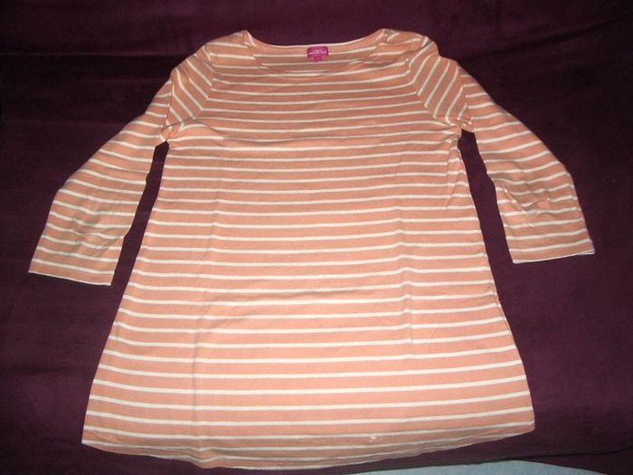 Maillot de grossesse, rayé orange/blanc, manches 3/4 col rond taille 38